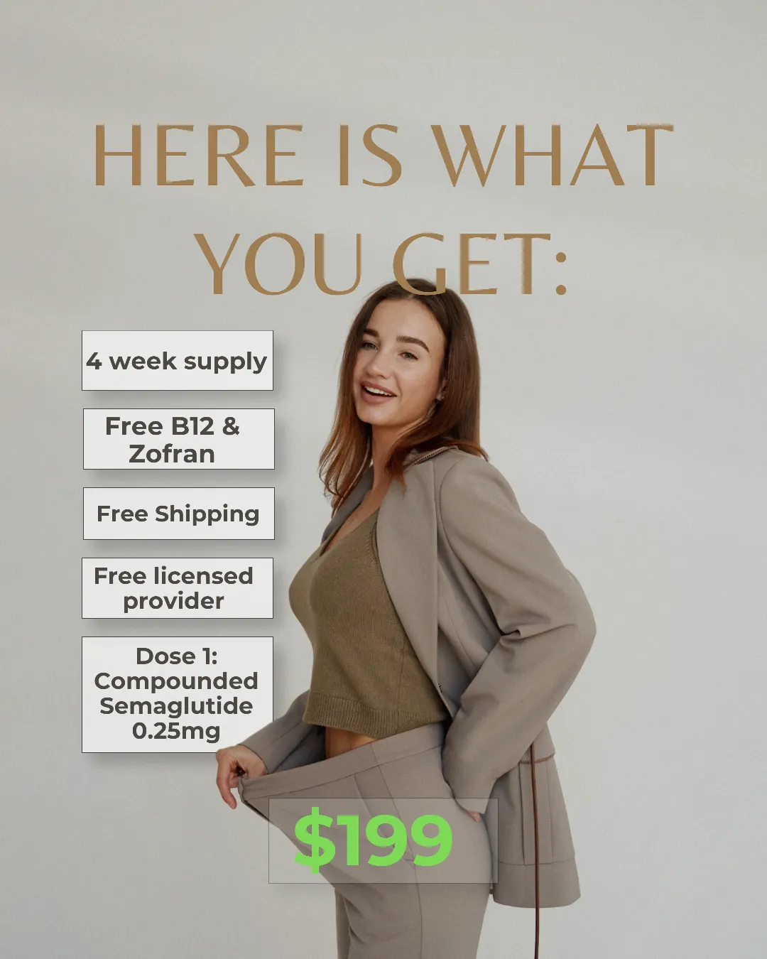 4-week supply. Includes B12, Zofran, licensed provider evaluation, and free shipping. If you are not approved by the provider, $50 will be retained for the medical evaluation and the remaining $200 will be refunded within 3–5 business days.